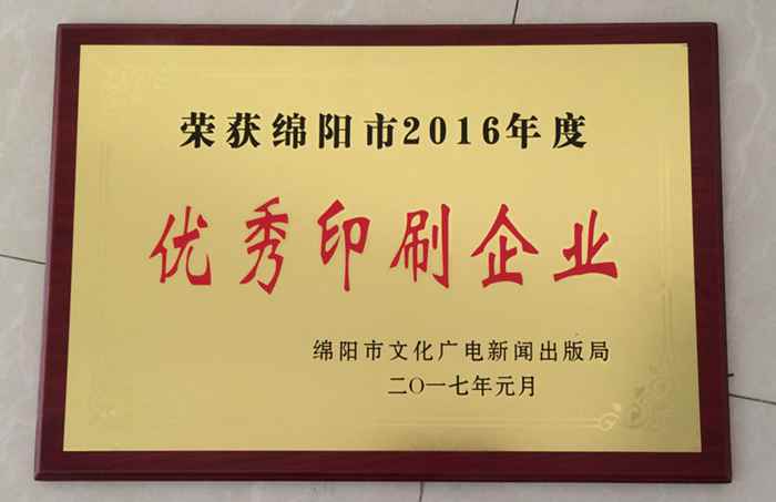 公司荣获绵阳市2018年度优秀印刷企业